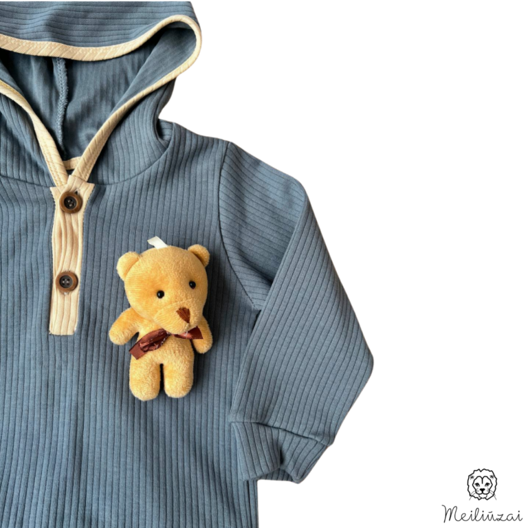Dviejų dalių komplektukas su mielu akcentu, meškučiu-žaisliuku, ilgomis rankovėmis.